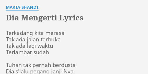 Dia Mengerti Lyrics By Maria Shandi Terkadang Kita Merasa Tak